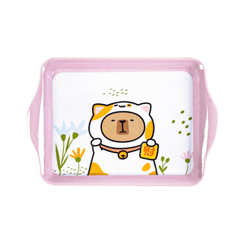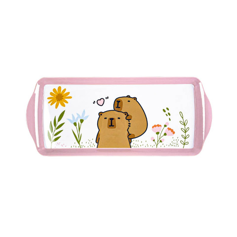 Bestwares personalizzabile bambini melamina rettangolo vassoio con manici simpatico modello di capibara cartone animato per bambini