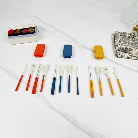 סט סכו""ם חיטה נייד סט מקלות אכילה כפית סכין מזלג עבור בית ספר לקמפינג נסיעות סכו""ם פלסטיק מתכלה מתכלה