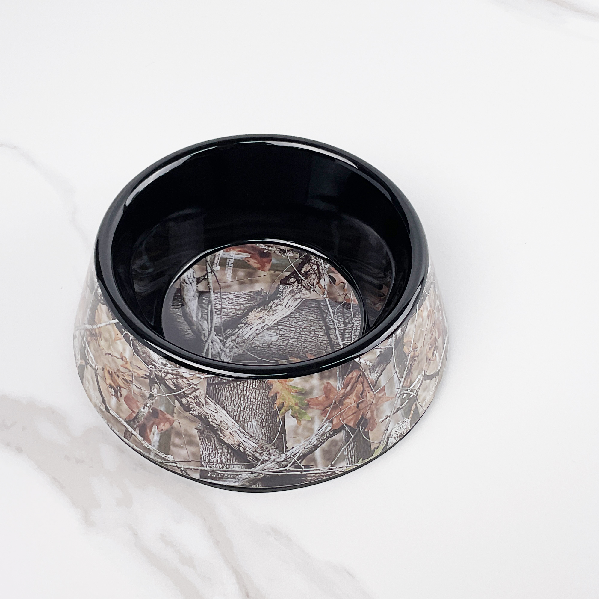 this pet bowl with the maple design is very shinny ,the bottom have the anti- slip rubber ,which is very steady ,this pet bowl is gloss finish surface and very easy to clean ,this shape can do inside decal printing and outside decal printing